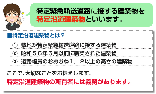 | 東京都では、大災害時における緊急輸送道路となる沿道に立つ建築物の耐震化を進めています。