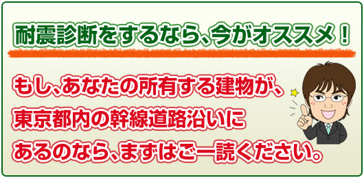 | 東京都では、大災害時における緊急輸送道路となる沿道に立つ建築物の耐震化を進めています。